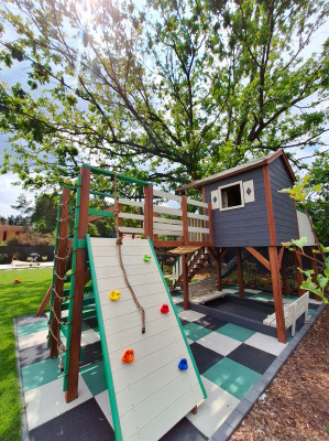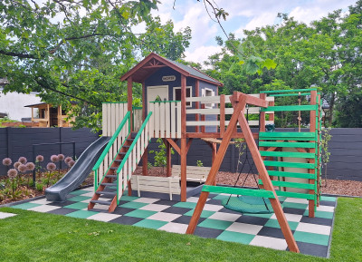 Uroczy domek w stonowanych, ciekawych kolorach doskonale komponujących się z otoczeniem. Dzięki harmonijnej kolorystyce prezentuje się niezwykle naturalnie i przyjemnie dla oka. Jednym słowem – wygląda jak z bajki!