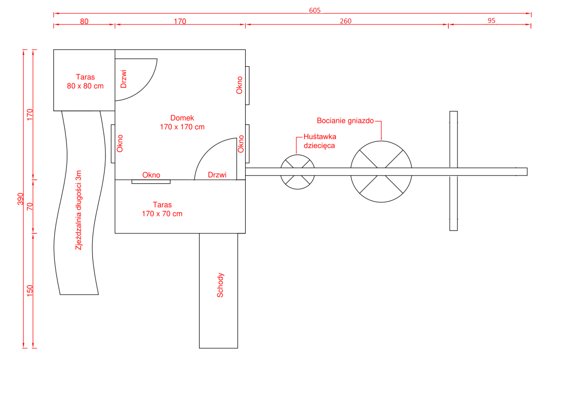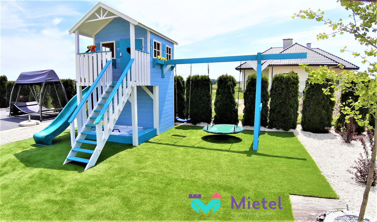 Zestaw wykonany jest solidnie, estetycznie i starannie, z zastosowaniem technik ciesielskich, dzięki czemu nasze maluchy będą w pełni bezpieczne, a przy tym ciekawa kolorystyka sprawia, że domek będzie idealną dekoracją naszego ogrodu.