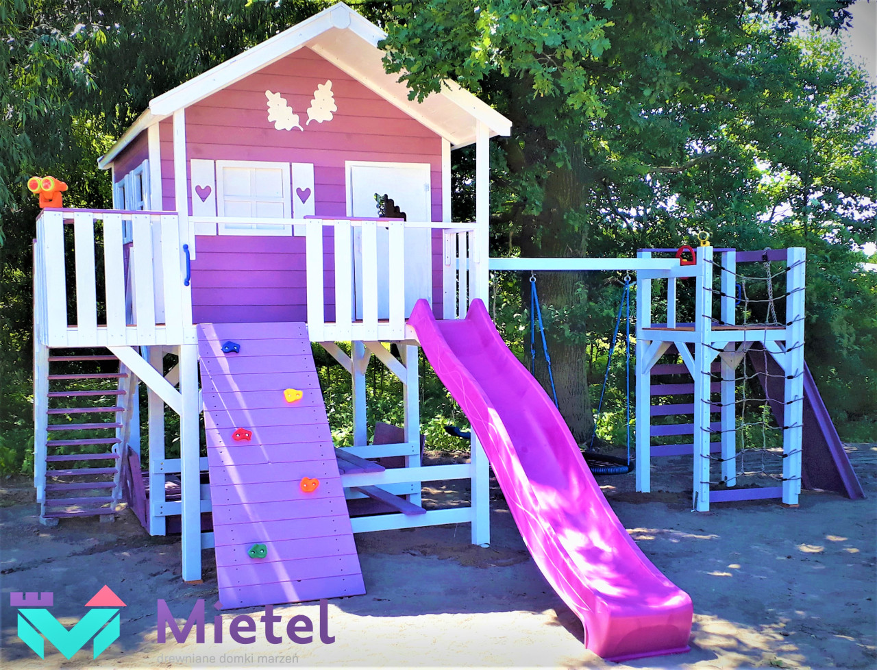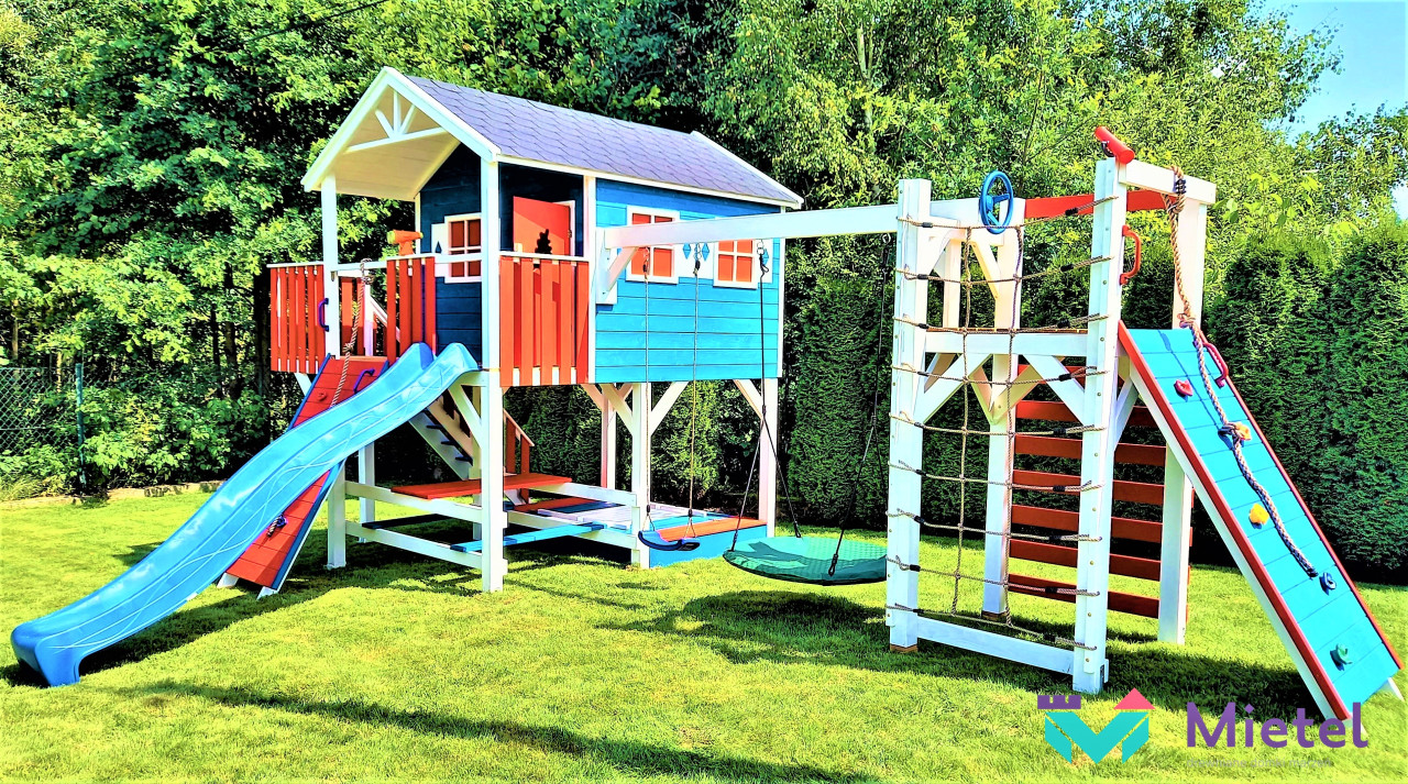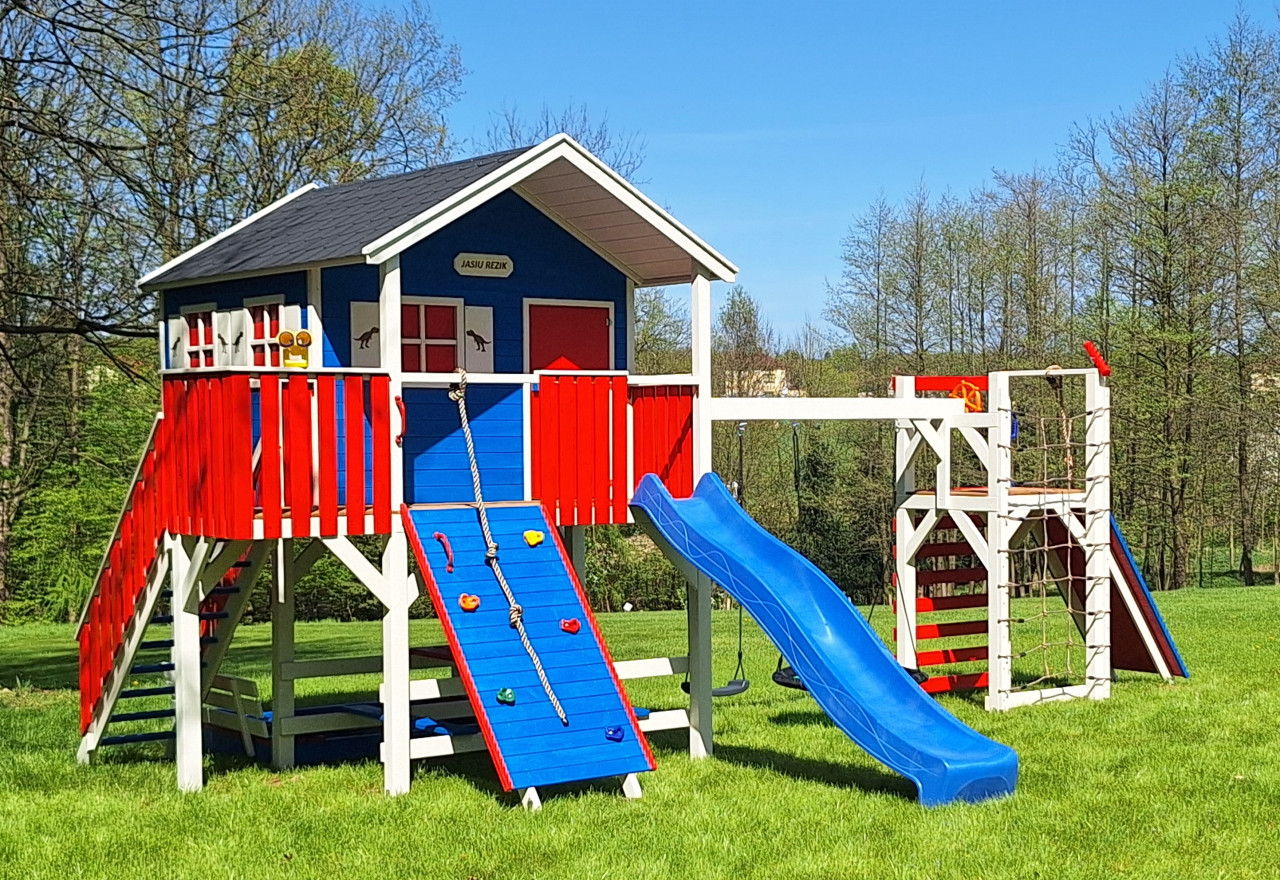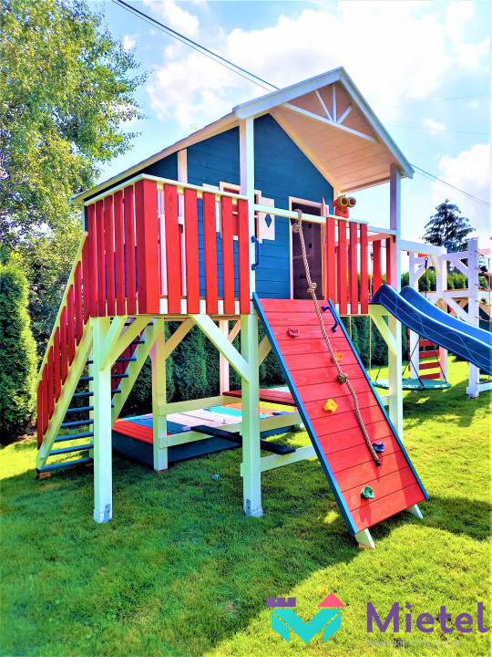 Zestaw wykonany jest solidnie, estetycznie i starannie, z zastosowaniem technik ciesielskich, dzięki czemu nasze maluchy będą w pełni bezpieczne, a przy tym ciekawa kolorystyka sprawia, że domek będzie idealną dekoracją naszego ogrodu.