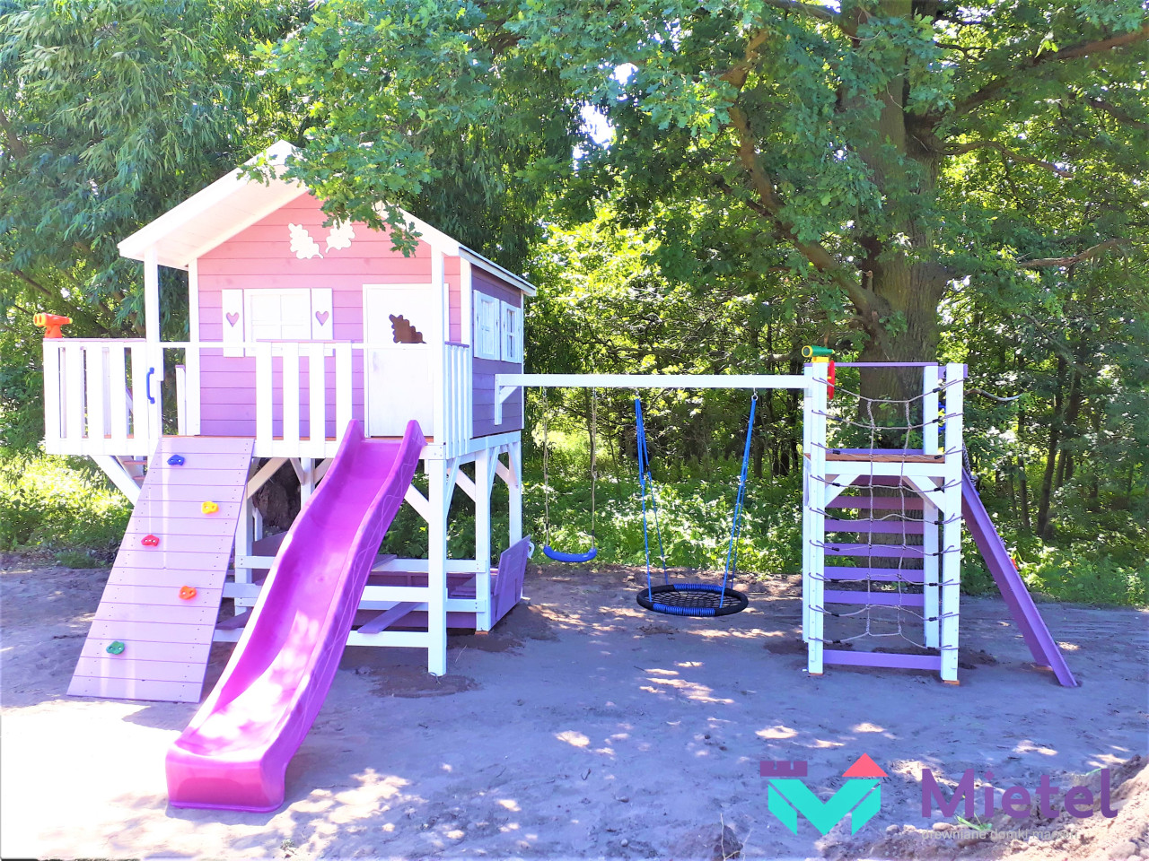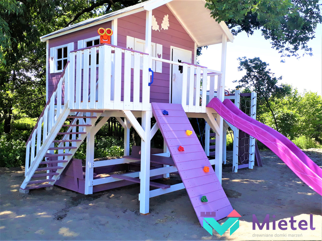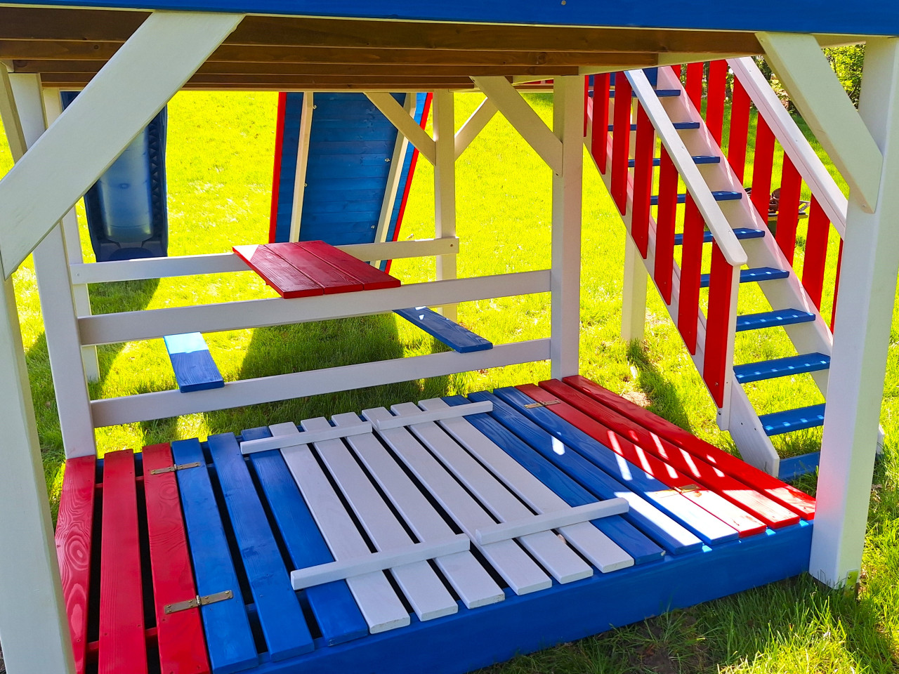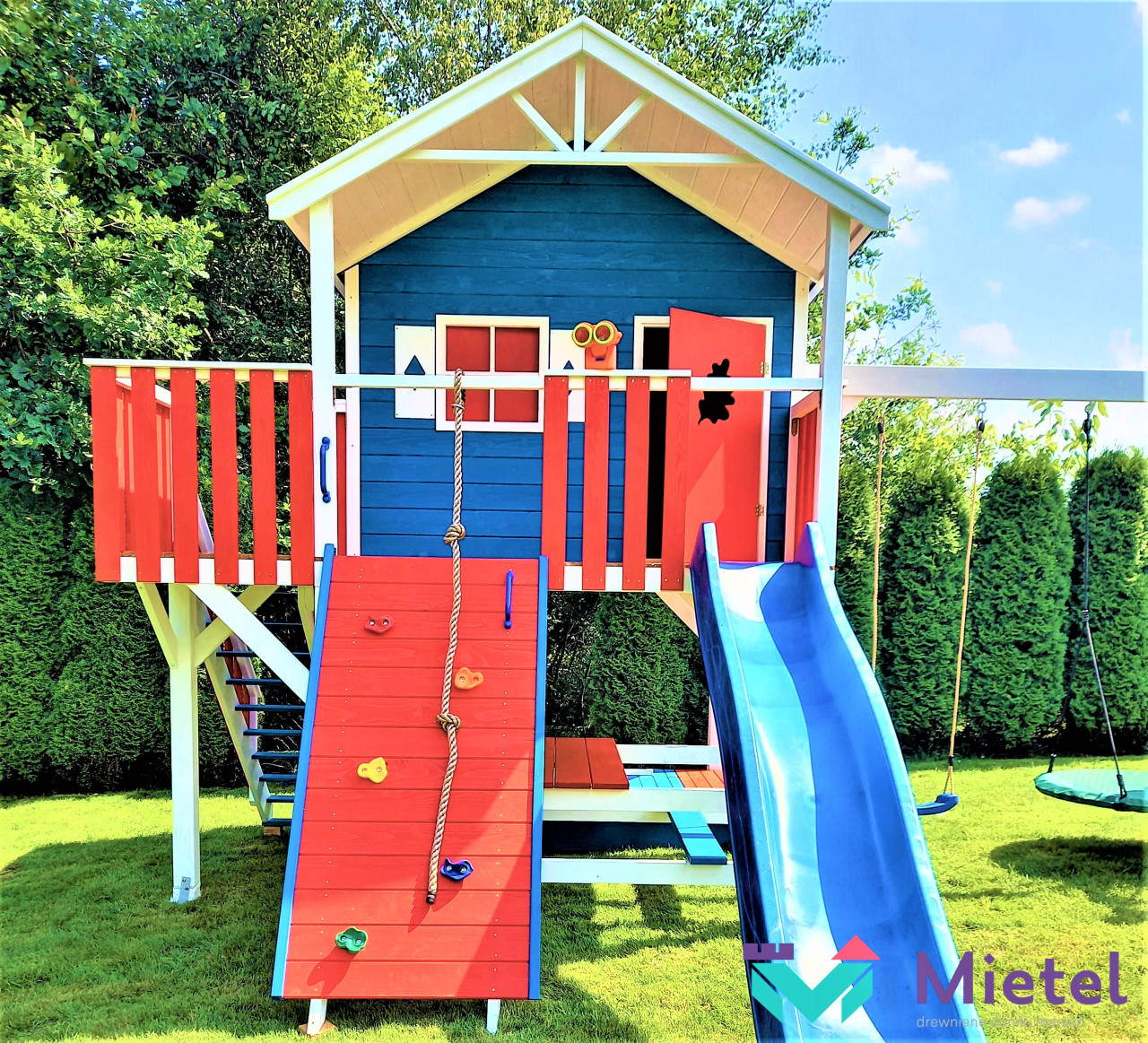 Zestaw wykonany jest solidnie, estetycznie i starannie, z zastosowaniem technik ciesielskich, dzięki czemu nasze maluchy będą w pełni bezpieczne, a przy tym ciekawa kolorystyka sprawia, że domek będzie idealną dekoracją naszego ogrodu.
