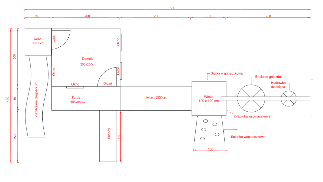 - Dodatkowy taras do zjeżdżalni na bocznej ściance domku o wymiarach 80cm x 80cm