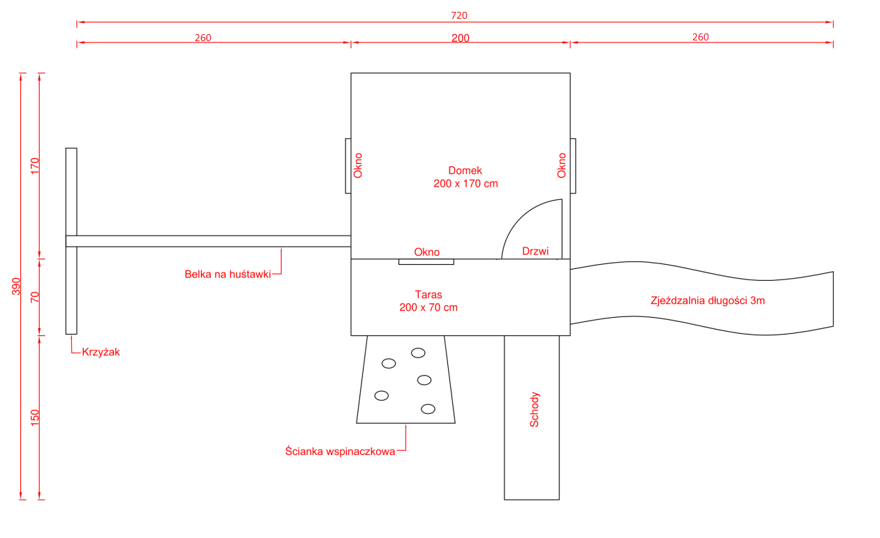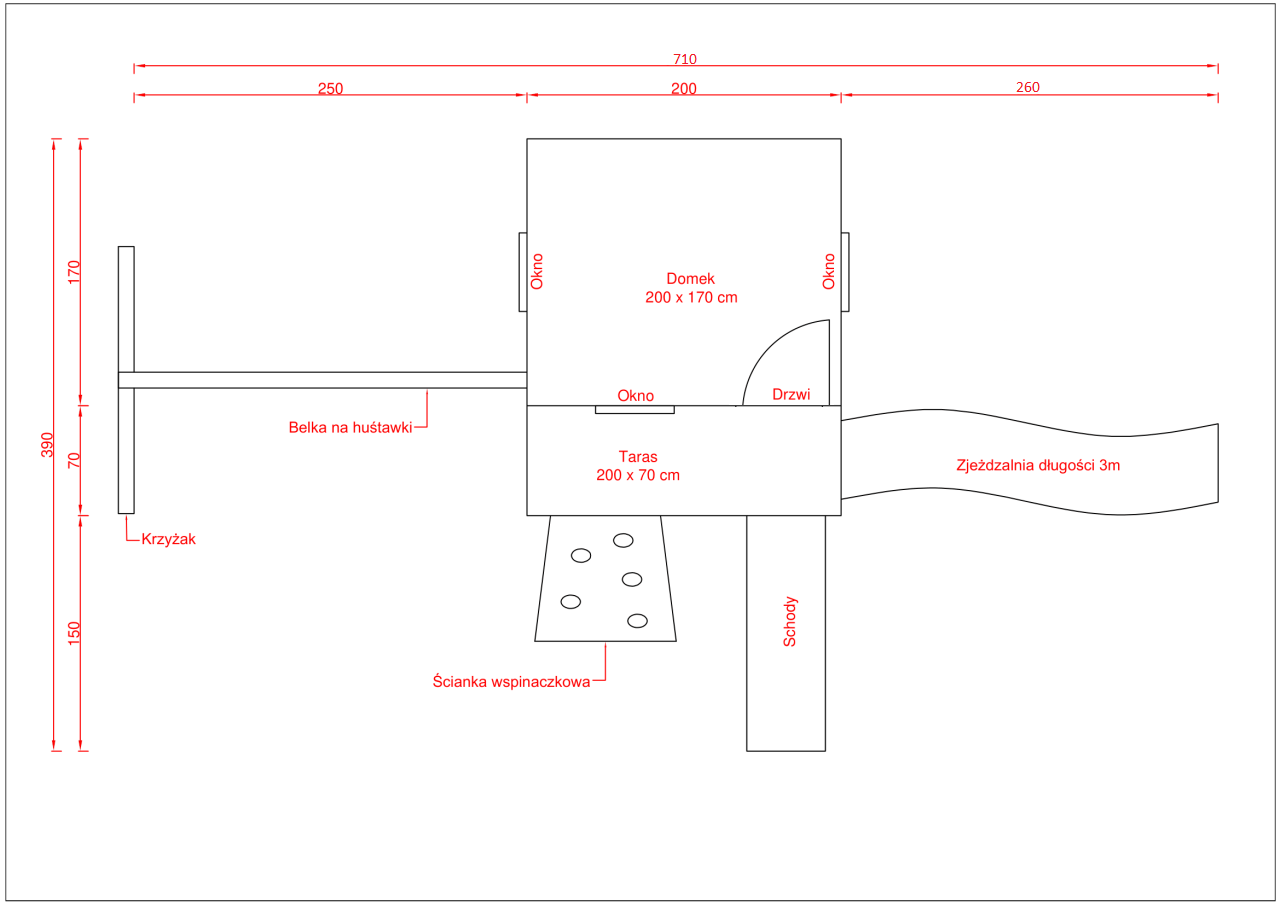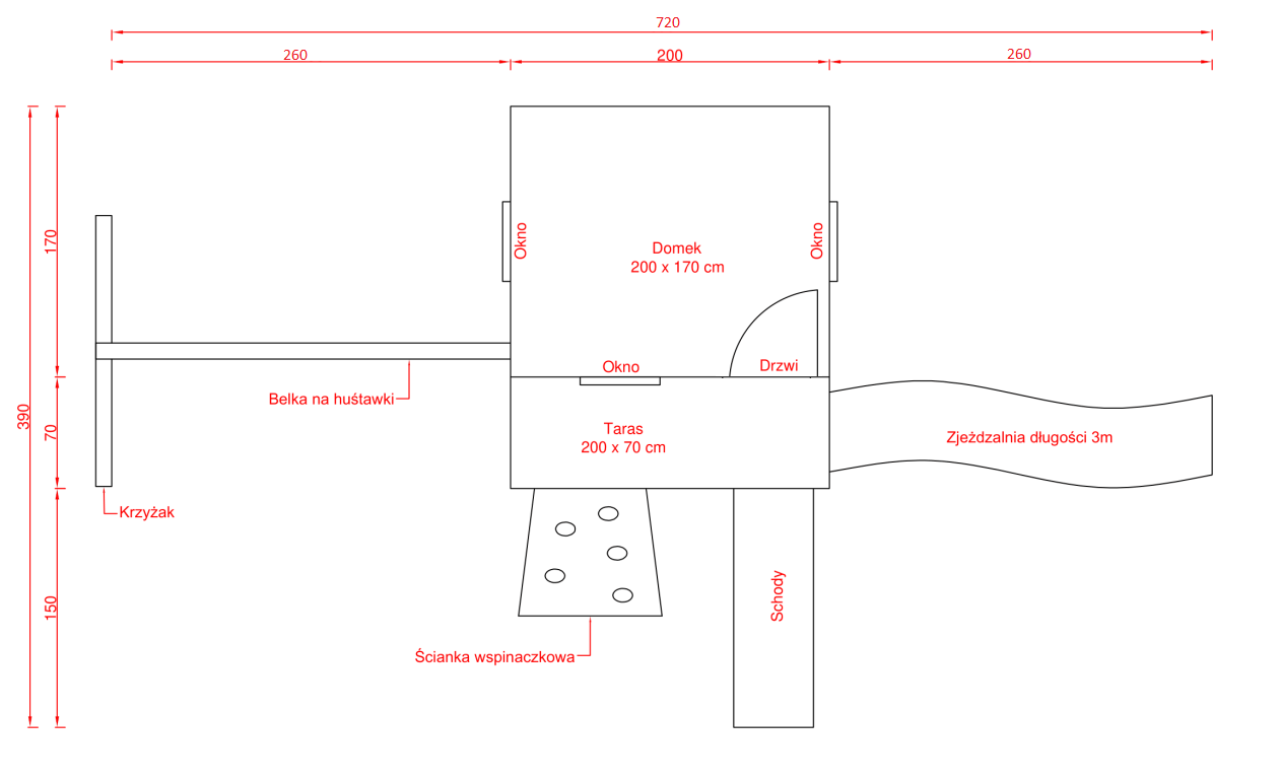 Zestaw wykonany jest solidnie, estetycznie i starannie, z zastosowaniem technik ciesielskich, dzięki czemu nasze maluchy będą w pełni bezpieczne, a przy tym ciekawa kolorystyka sprawia, że domek będzie idealną dekoracją naszego ogrodu.
