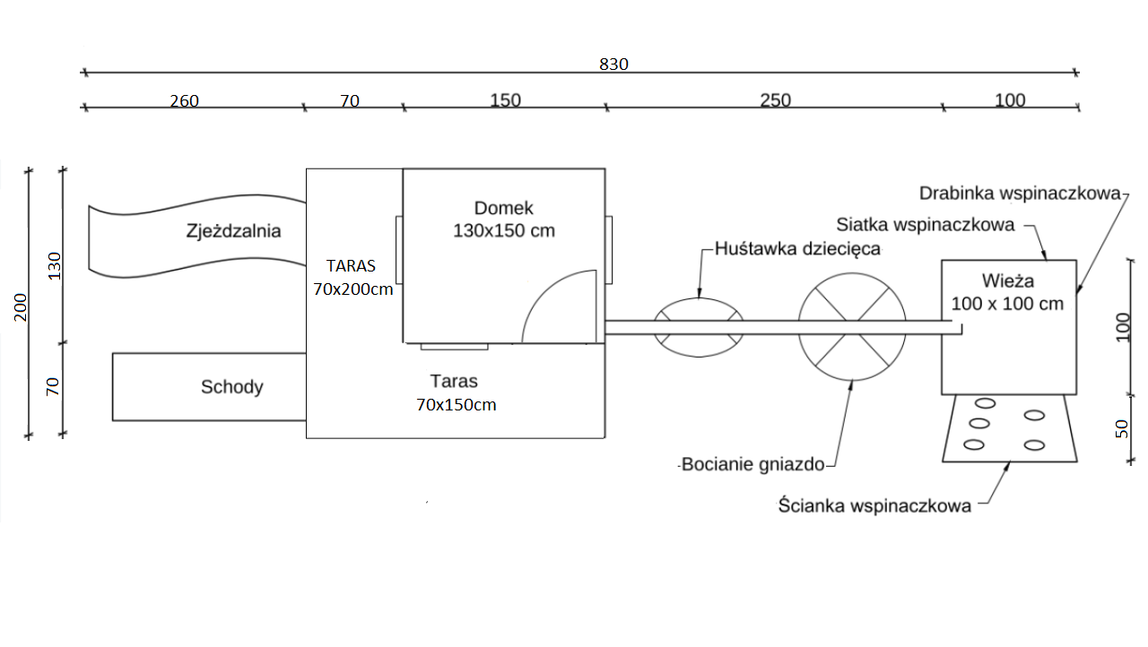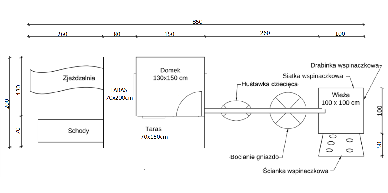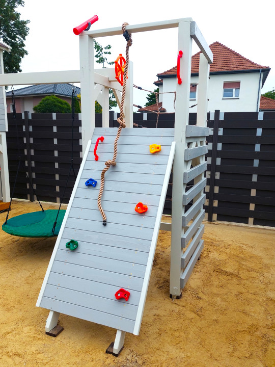 Domek „Małego Odkrywcy” jest miejscem idealnym do zabawy, gier i spędzania czasu w sposób aktywny, gdzie każdy znajdzie coś dla siebie. Rozbudowany zestaw przystosowany został do wąskich i długich działek.