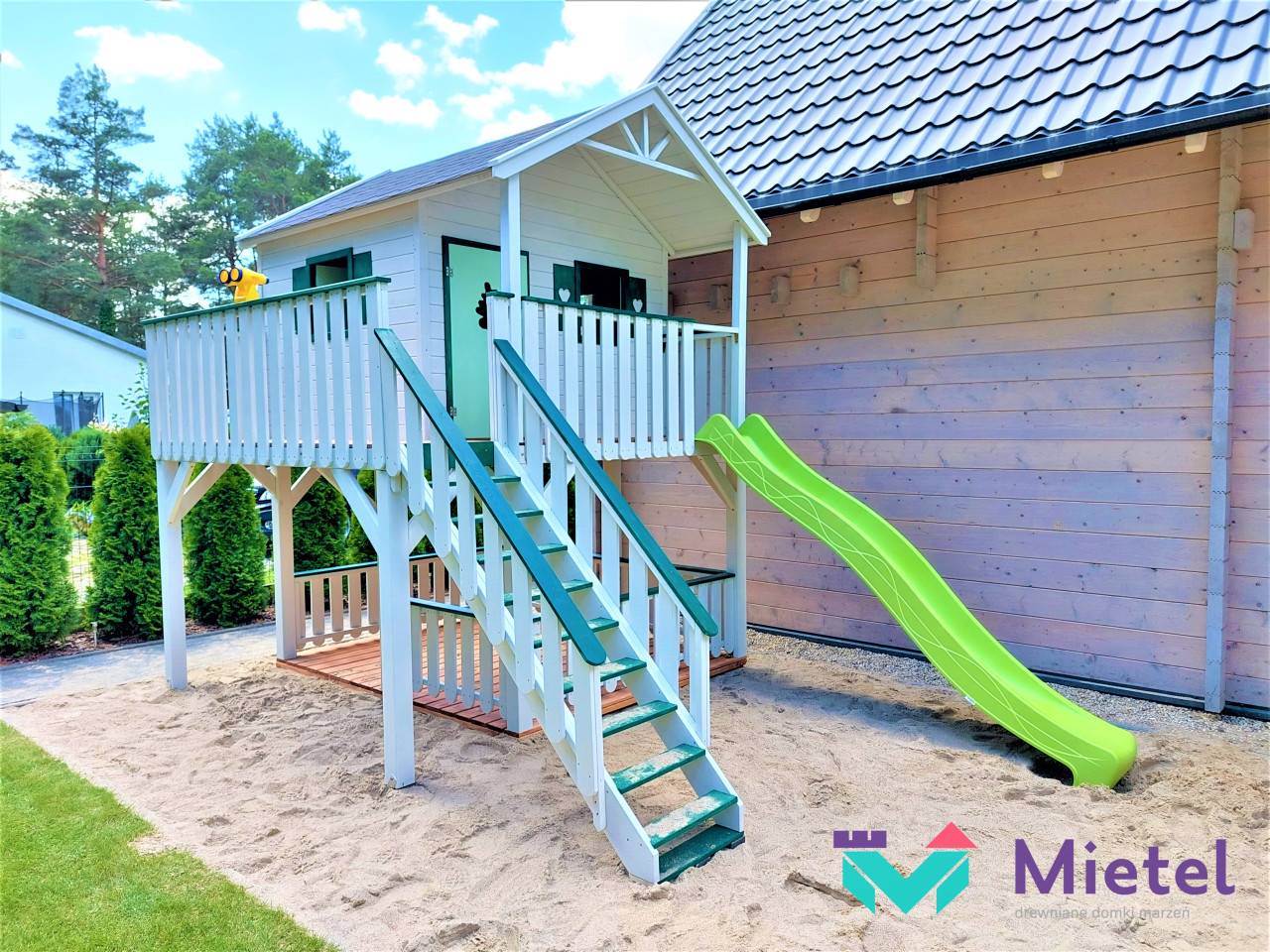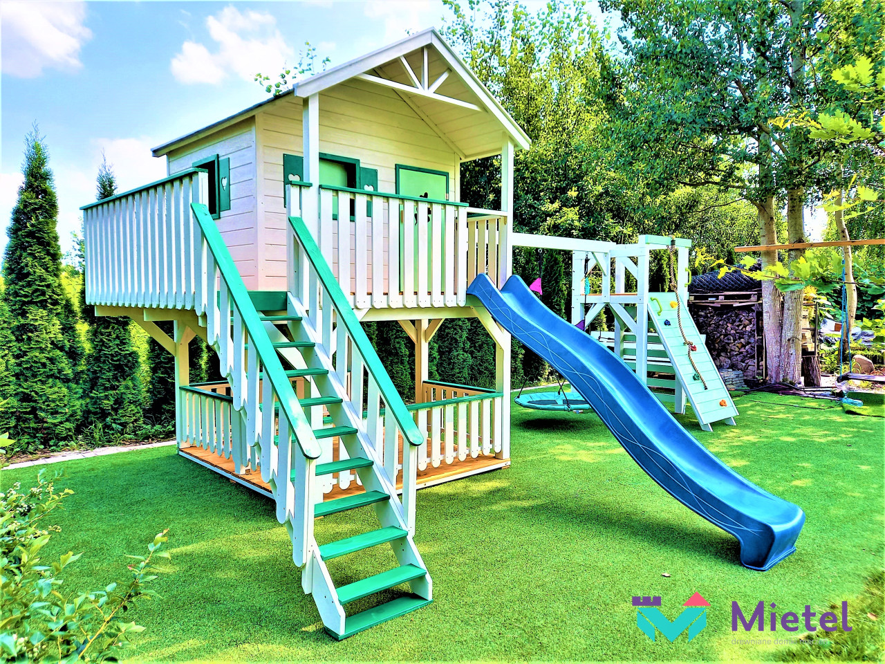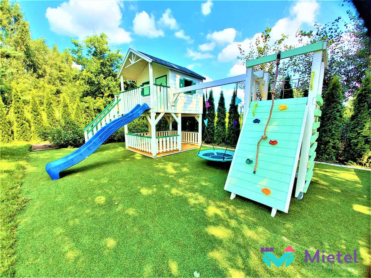 Domek „Miętowy” jest miejscem idealnym do zabawy, gier i spędzania czasu w sposób aktywny, gdzie każdy znajdzie coś dla siebie. Rozbudowany zestaw daje naszym pociechom bogaty wachlarz możliwości, a rodzicom gwarancję, że zapewniają swoim skarbom odpowiedni rozwój. Z pewnością i my, dorośli, zapragniemy towarzyszyć dzieciakom w zabawie.