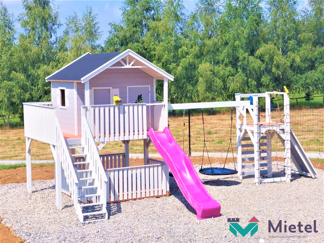 Zestaw wykonany jest solidnie, estetycznie i starannie, z zastosowaniem technik ciesielskich, dzięki czemu nasze maluchy będą w pełni bezpieczne, a przy tym ciekawa kolorystyka sprawia, że domek będzie idealną dekoracją naszego ogrodu.