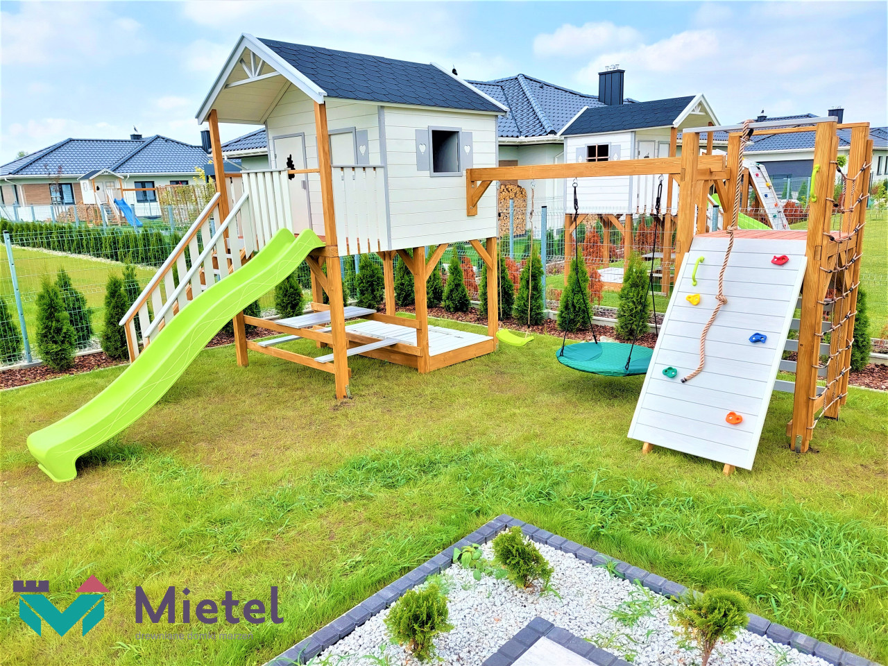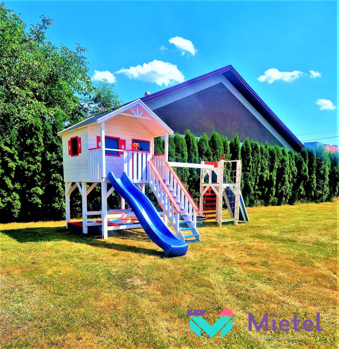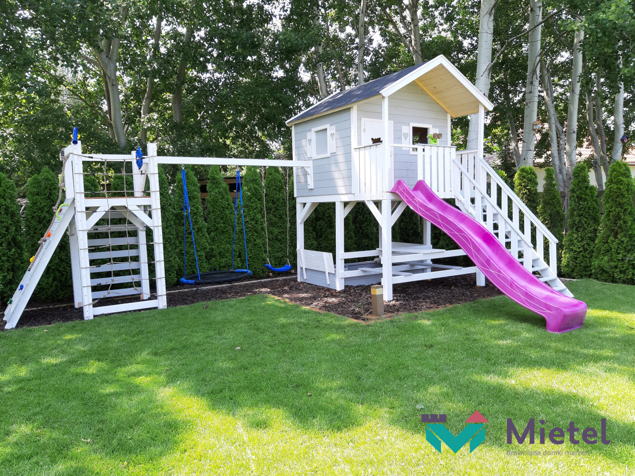 Zestaw wykonany jest solidnie, estetycznie i starannie, z zastosowaniem technik ciesielskich, dzięki czemu nasze maluchy będą w pełni bezpieczne, a przy tym ciekawa kolorystyka sprawia, że domek będzie idealną dekoracją naszego ogrodu.