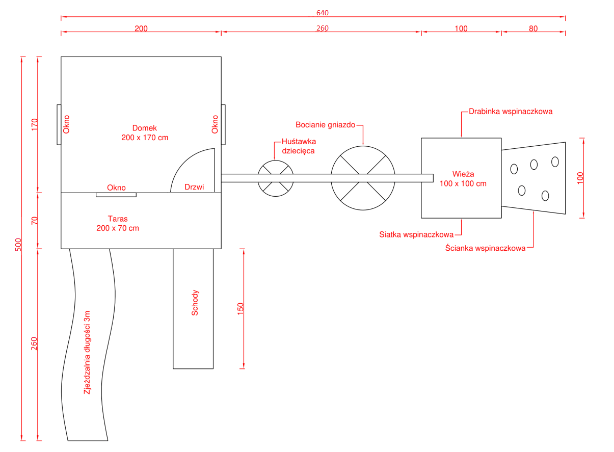 - Zjeżdżalnia o długości 3 m w wybranym kolorze;