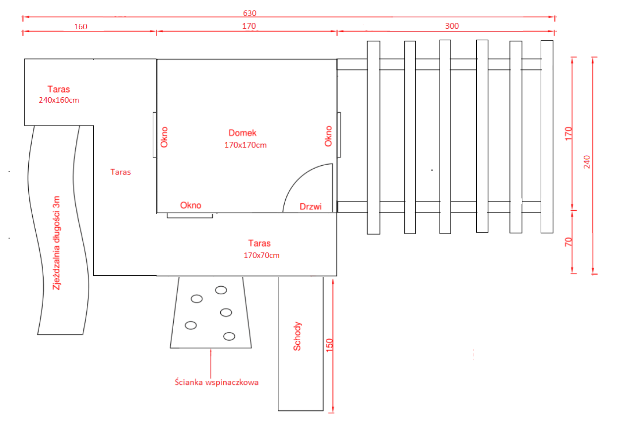 - Domek o wymiarach 170m x 170 cm , z tarasem 170x70cm